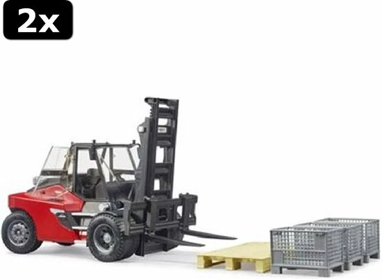 De Linde HT160 met pallet en 3 pallet boxen van Bruder is een snel en handige voertuig bij het voeren van zware lasten. Voornamelijk bij lange afstanden zorgt dit model voor een eenvoudige prestatie. De Linde HT160 is een gedetailleerde heftruck model. Het originele model heeft een laadvermogen van 16 ton, een hefhoogte van 4 meter en een moderne display in de bestuurderscabine. De Bruder model, beschikt ook over een moderne bestuurderscabine. Daarnaast is de bestuurderscabine volledig gemaakt van glas en biedt het Bworld-figuren uitstekende zicht. De truck bevat een dubbele hef-mast waarvan de hef- en kantelfuncties kunnen worden bediend. Het model heeft een gemakkelijk te bedienen stuurinrichting, waarmee kinderen net als het origineel in de kleinste ruimtes kunnen manoeuvreren. Een pallet voor zwaar gebruik wordt meegeleverd voor het vervoer van grote ladingen, evenals 3 gaasboxen.
