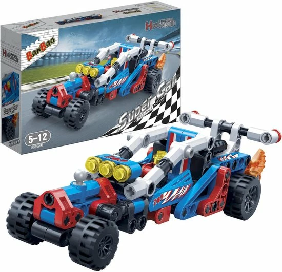 Bouw de Blast met de bouwstenen van BanBao. Deze racer is berucht voor zijn ongelooflijke hoge snelheid. Hij heeft een lange en smalle ontwerp dat erg dynamisch is en hij heeft een krachtige straalmotor die hem heel snel laat optrekken. Daardoor heeft hij weinig luchtweerstand en kan hij al zijn tegenstanders makkelijk inhalen. De uitdaging is om deze ultra snelle racer in de bochten onder controle te houden! De Blast is een van de acht gave racers uit de Super Car serie van BanBao met elk unieke en leuke eigenschappen. Verzamel alle modellen en race alleen of tegen je vriendjes! Deze Super Car Hi-Tech speelset bestaat uit een racer genaamd Blast