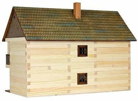 Te monteren met houtlijm. De set bevat tevens de kozijnen, daken, grondplaten en folie (voor de ramen).
