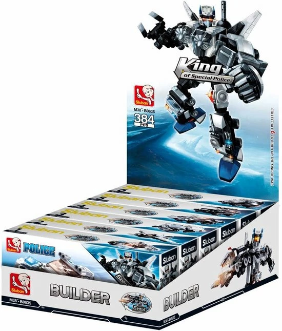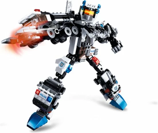 Building set politie, 6 doosjes apart te bouwen of van 6 doosjes een groete politierobot maken.