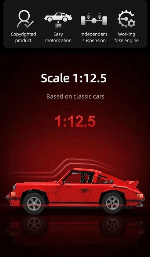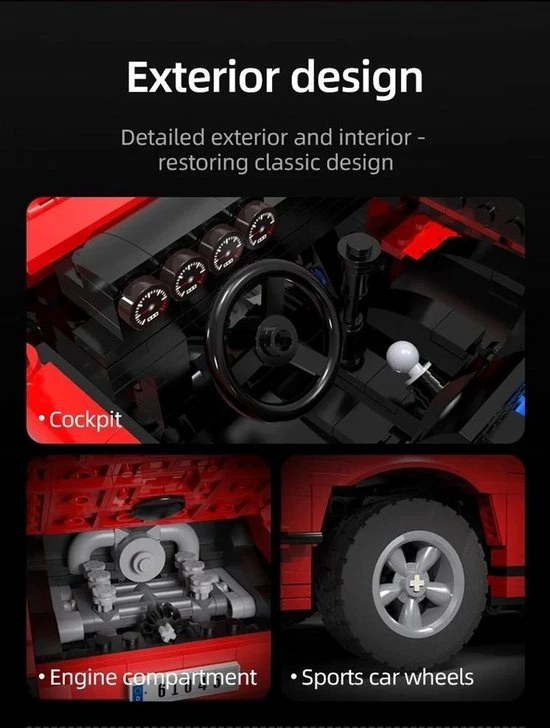 Cada Classic Sports Car (gemotoriseerd) – Design by M.Schlegel – Cada C61045W – Compatible met de bekende merken – Bouwset, constructieset – Motoren, accu, afstandsbediening – 1429 onderdelen