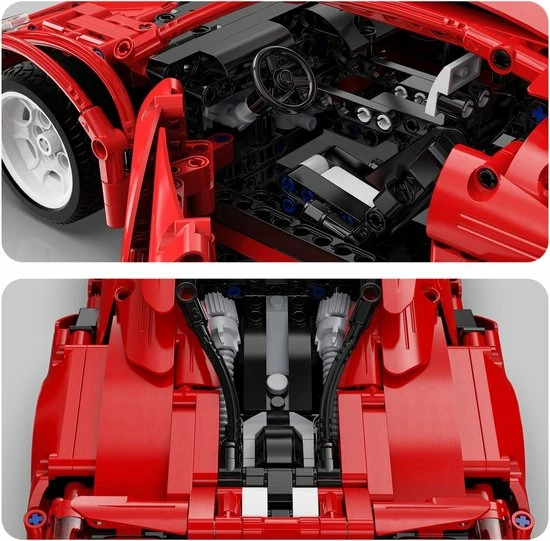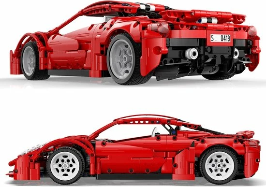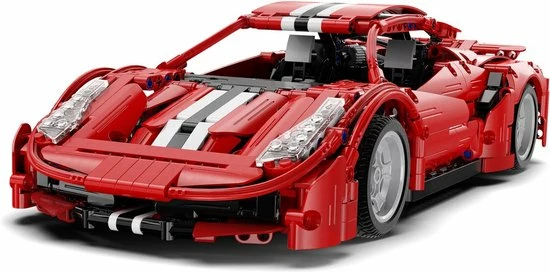 Replica van een Italiaanse sportwagen met veel details zoals de cockpit, achtervleugel, achteruitkijkspiegels, beweegbare deuren en kofferbak.