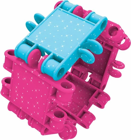 Bouwen met blokken en glamour combineren? Dat gaat prima met de 8-in-1 glitteremmer van Clics. Die bevat lekker veel glitter-Clicsen extra veel accessoires om stralende creaties mee te bouwen. Wat denk je van een handtas van Clics? Of een schitterende caravan mét auto? De echte fashionqueens zullen pronken met zelfgemaakte armbanden of een kroon en de ingenieurs in spe vinden ook het bouwplan van een glitterhovercraft schitterend. Dat is wat Clics educatief én funspeelgoed noemt. Ontdek de 133 Clics, 42 accessoires en vooral veel glitter in deze prachtige emmer.