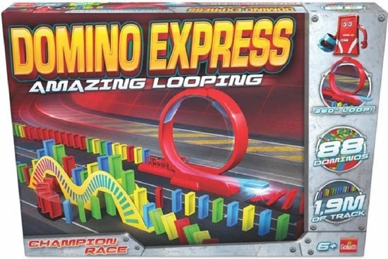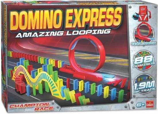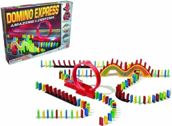 Een doos vol domino stunts. Alles valt.. En in één beweging staat alles weer rechtop met behulp van unieke dominoexpressbanen! Inclusief loop the loop, double wave, diverse dominoexpressbanen en dominostenen!