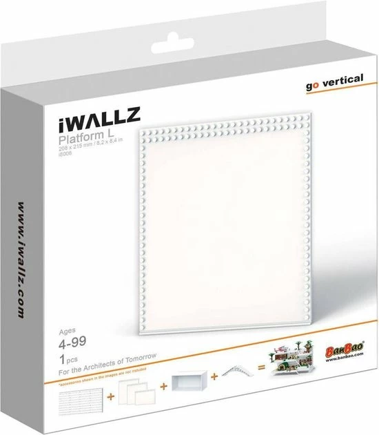 Ontdek een nieuwe manier om te spelen en te bouwen met jouw BanBao-steentjes. iWALLZ is een modulair en ruimte-besparend platform voor al je constructie-speelgoed. Met dit unieke idee is het mogelijk om verticaal met je speelgoed te bouwen en te spelen. iWALLZ is op een standaard neer te zetten of aan de muur te monteren, met dit iWALLZ-platform kan je meteen aan de slag!