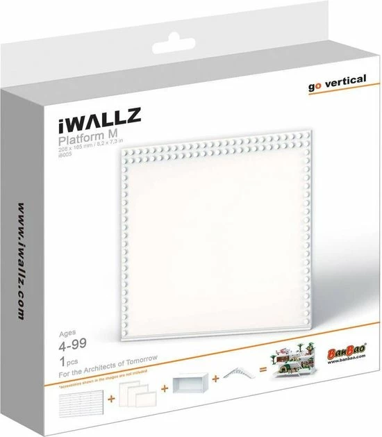 Ontdek een nieuwe manier om te spelen en te bouwen met jouw BanBao-steentjes. iWALLZ is een modulair en ruimte-besparend platform voor al je constructie-speelgoed. Met dit unieke idee is het mogelijk om verticaal met je speelgoed te bouwen en te spelen. iWALLZ is op een standaard neer te zetten of aan de muur te monteren, met dit iWALLZ-platform kan je meteen aan de slag!