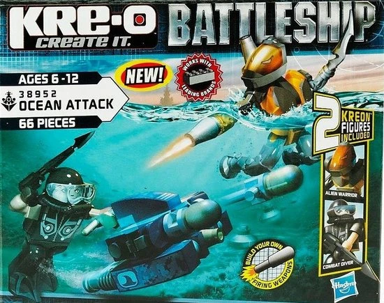 De OCEAN ATTACK set van KRE-O BATTLESHIP bestaat uit 66 onderdelen waarmee je aan de slag kan! Bouw een jetski met een wapensysteem dat wel 2 projectielen lanceert zodat je iedere strijd ter land, ter zee of in de lucht kunt winnen! Incl. 2 KREON figuren: een duiker en een buitenaardse krijger die je aan het stuur van de jetski kan plaatsen! Inhoud: 66-delig incl. 2 KREONS: een duiker en een buitenaardse krijger. Leeftijdsadvies: vanaf 6 jaar