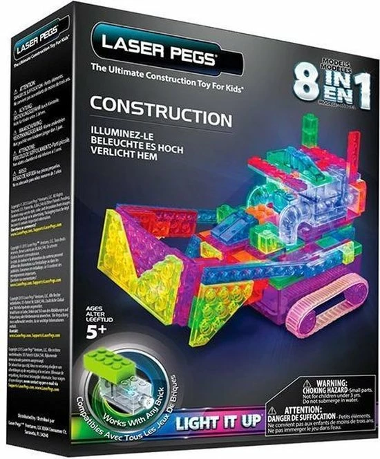 Welkom in de wereld van LaserPegs. Maak je eigen bouwplaats met deze geweldige 8 in 1 Construction Runner set. Van graafmachine tot bulldozer, niets is te gek met deze set. Alle voertuigen die je bouwt kunnen rijden met de bijgeleverde rupsbanden en zijn klaar voor ieder terrein. De Runner Powerbase zorgt voor genoeg energie om ieder bouwwerk te laten rijden en te voorzien van lichteffecten. Wacht niet langer en speel zoals JIJ dat graag wilt!