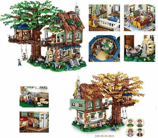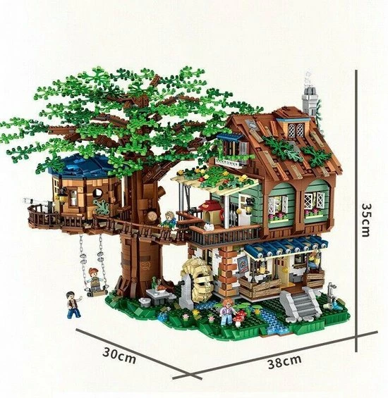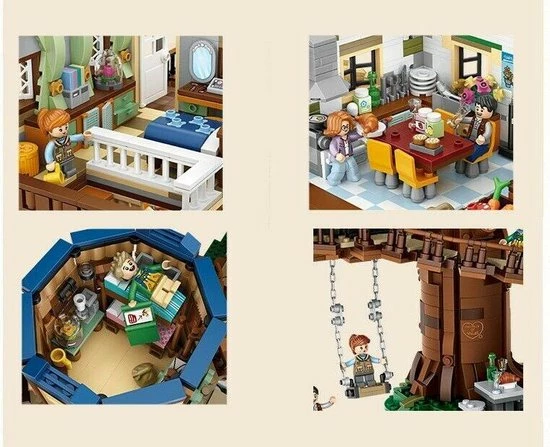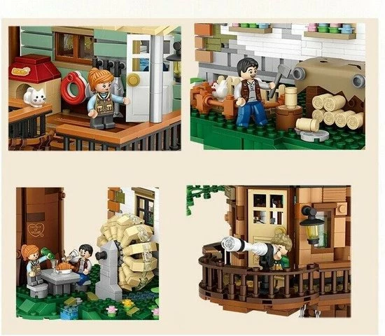 Prachtige boomhut met kat, schommel, waterrad, telescoop en vele andere snuisterijen, je kunt scènes simuleren zoals hout hakken, katten voeren en astrologie observeren.