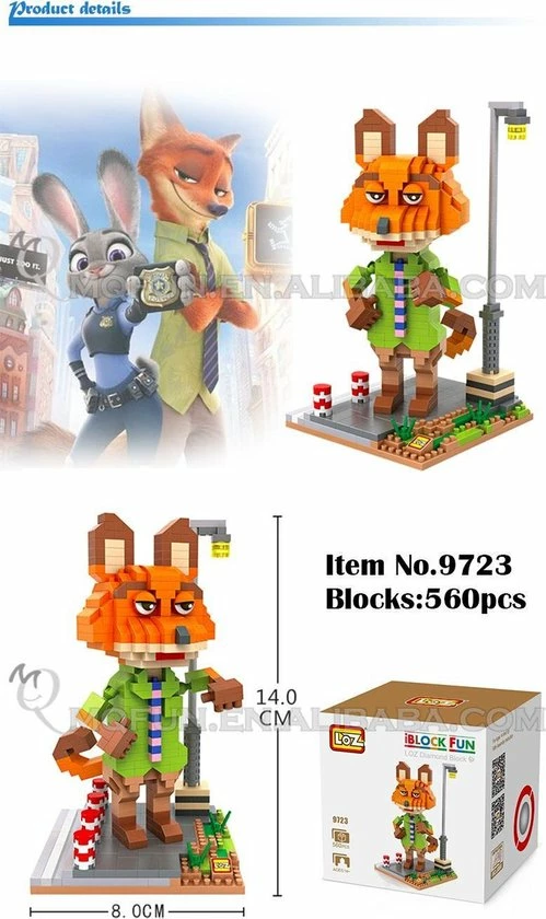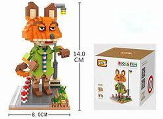Nick Wilde, de sluwe vos uit de Disney-Movie Zootopia, als uitdagende 3- dimensionale puzzel van maar liefst 560 miniblocks, verbazingwekkend kleine bouwsteentjes. Dit educatieve constructiespeelgoed van stevig, niet-toxisch ABS plastic, wordt vergezeld van een volledige bouwinstructie en staat garant voor urenlang bouw- en speelplezier. Wordt geleverd in een mooie, full colour box, dus ook prima geschikt om cadeau te geven! Leeftijd 14+ Onze miniblocks zijn afkomstig van de fabrikant LOZ en van hoge kwaliteit!
