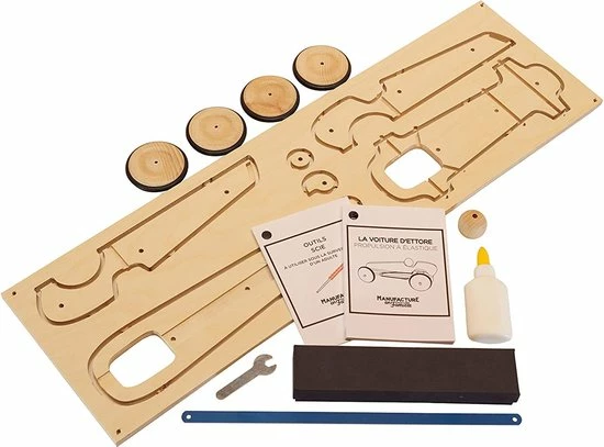 Deze stoere formule 1 auto dompelt kinderen om in de wereld van de Grand Prix. Het is de ideale gelegenheid om kinderen kennis te laten maken met de basis van mechanica en houtbwerking. Alle benodigheden zijn inbegrepen, aan de hand van de bijgeleverde fotogids worden alle stappen uitgelegd.
