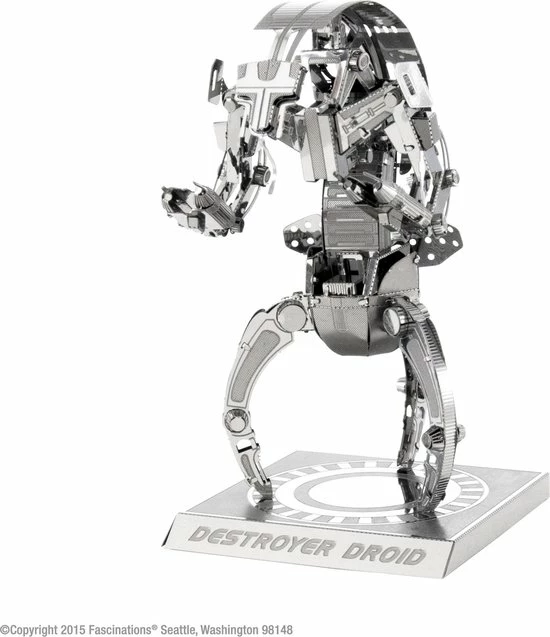 De Metal Earth collectie van Fascinations wordt gemaakt van kleine onderdelen die met een laser in een dun metalen vel zijn voorgesneden.