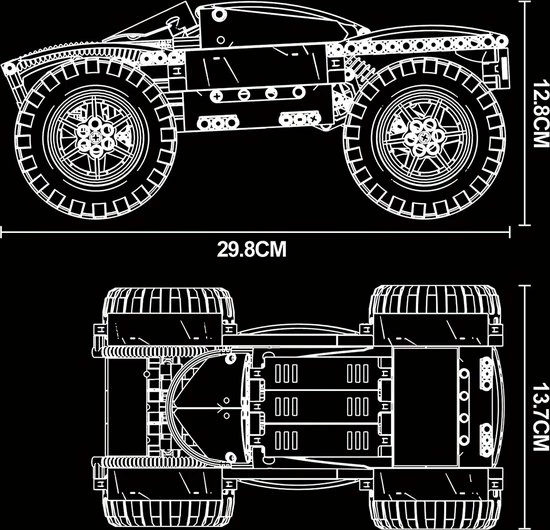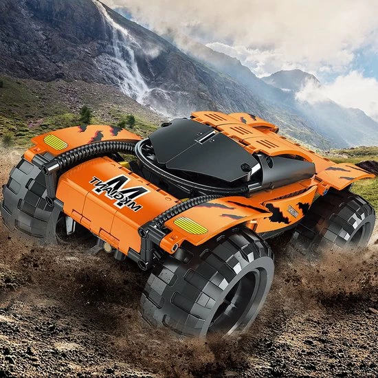- Uitgerust met een 2.4G-afstandsbediening. Download de gratis bedienings-app en verbind Bluetooth. Je bestuurt de auto via je telefoon.