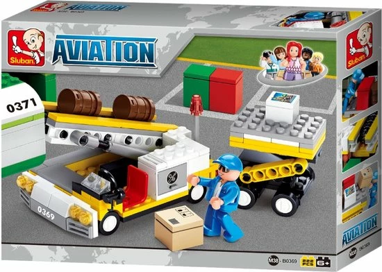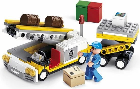 Het is hard werken om het vliegtuig op tijd vol te laden met alle bagage en pakketten. Met de Sluban Bagagelader vul je vliegensvlug de bagageruimte van het vliegtuig. Sluban bouwsteentjes passen op andere merken bouwsteentjes. Dit bouwset is het ideale cadeau voor stoere jongens.