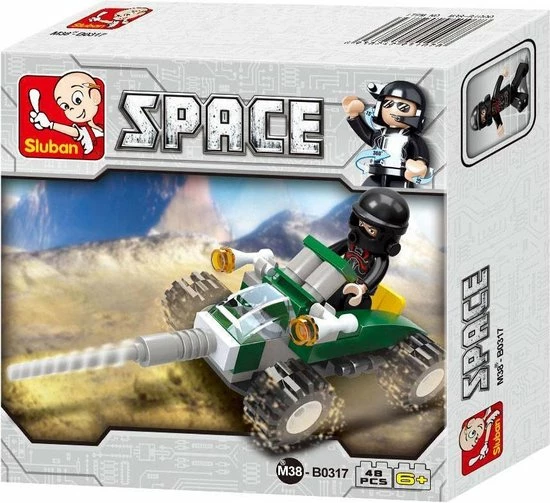 Deze Space Quad M38-B0317 van Sluban wordt bestuurd door een poppetjeProduct informatie: