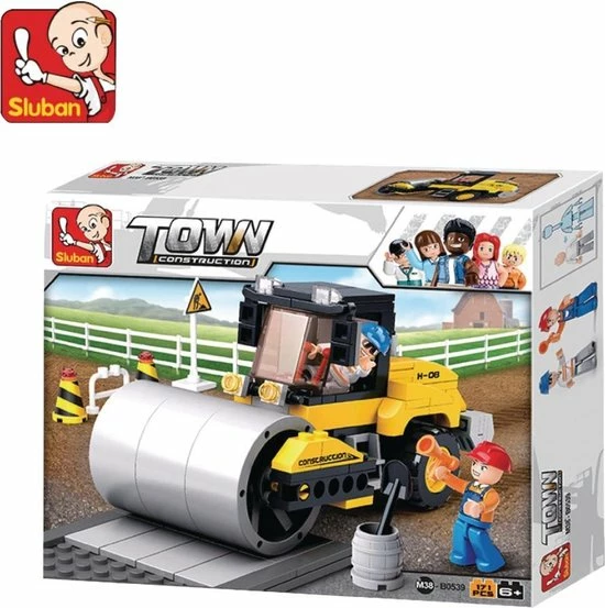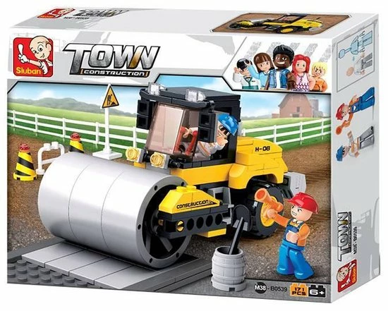 Sluban Wegenwals met 2 poppetjes en 171 bouwstenen. Sluban past op alle andere merken bouwstenen.Sluban Town Construction – Wegenwals M38-B0539